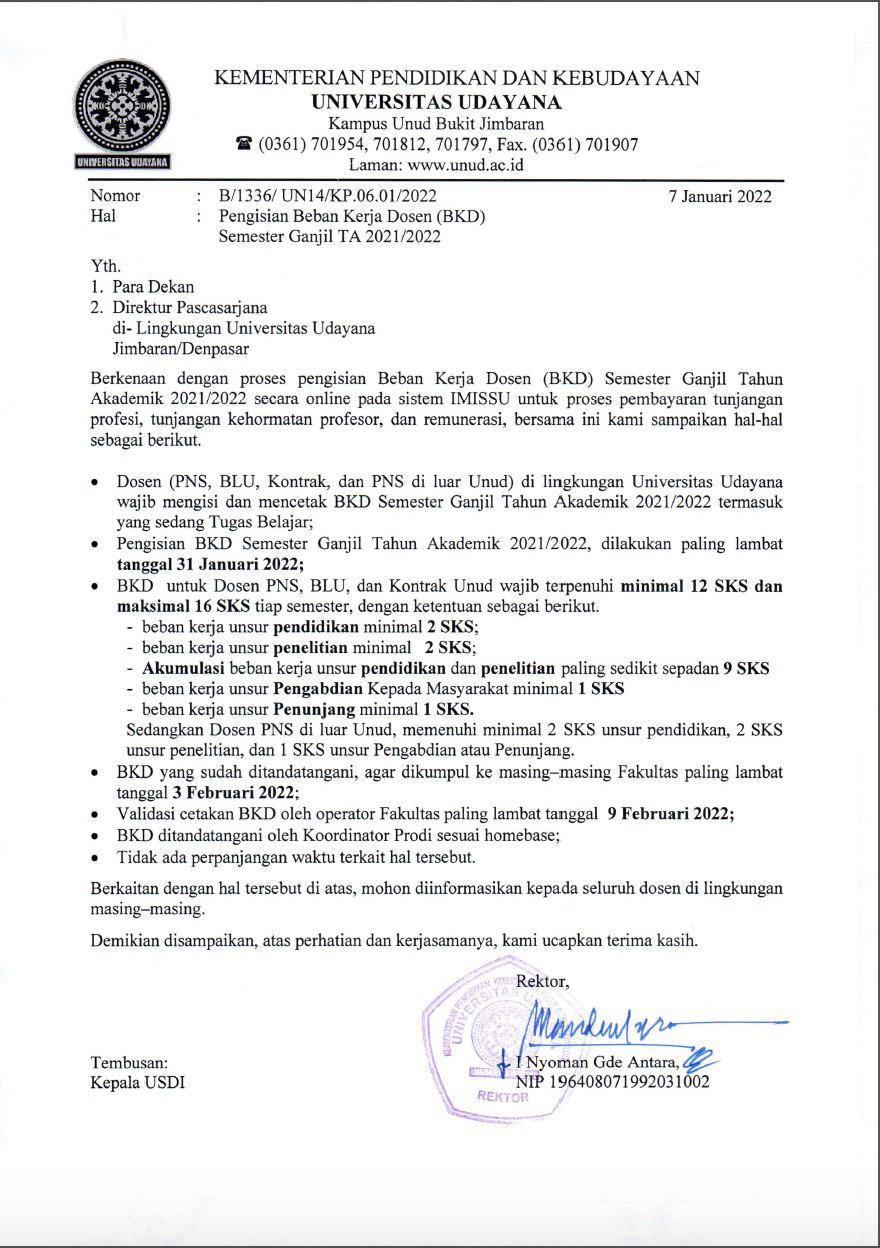 Berikut ini adalah informasi pelaporan BKD Semester Ganjil 2021/2022. Mohon diperhatikan secara seksama. Terima kasih.